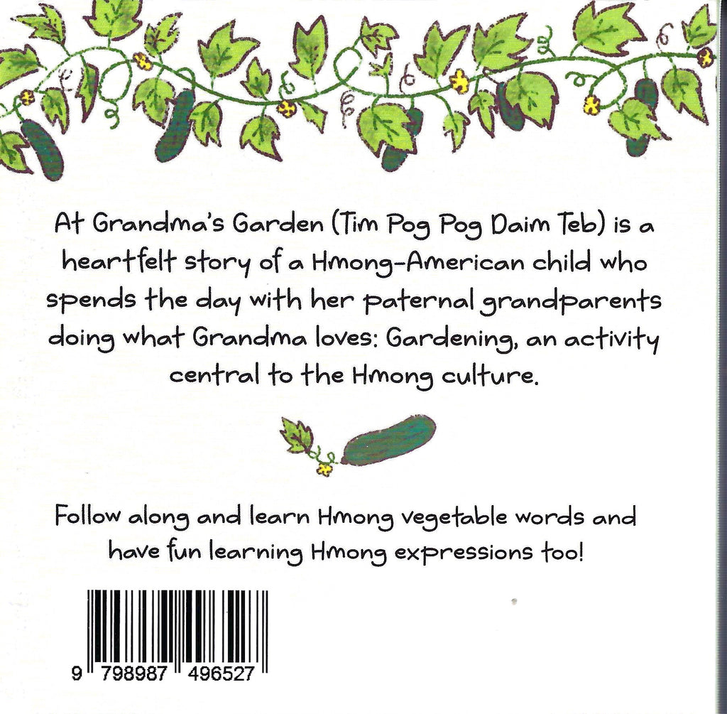 At Grandma's Garden (Tim Pog Pog Daim Teb) is a heartfelt story of a Hmong-American child who spends the day with her paternal grandparents harvesting vegetables. Gardening is central to Hmong culture and now a hobby to many. Follow along on this trip to the garden and learn Hmong words for vegetables. Have fun pronouncing Hmong expressions too!